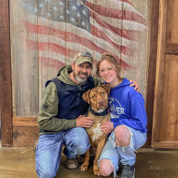 After completing 3 weeks of training, Reggie had learned some basic obedience and how to play nicely with other dogs, without becoming too overbearing. Nearing the end of his stay with us, our manager, Maddie, and trainer, Chad, fell in love with Reggie and they decided to adopt him. During those weeks of training, they grew to love his goofy, uncoordinated nature and how sweet and playful he was. He now has a forever home with Maddie and Chad and visits Rock River weekly for daycare where he can play and burn energy.