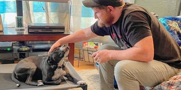 The community soon fell in love with Miss Sally and everyone was rooting for her. The Courier even did a special story about her! This social media attention helped Sally find her forever human in a home that was just right for her and her temperament. Her new owner works and bonds very well with her to this day. He uses Sally's training to prevent any of her old, bad behaviors from becoming a problem and she does fantastic at home and in public. Sally now enjoys her days getting endless belly starches, playing outside and going on walks with her new favorite person.